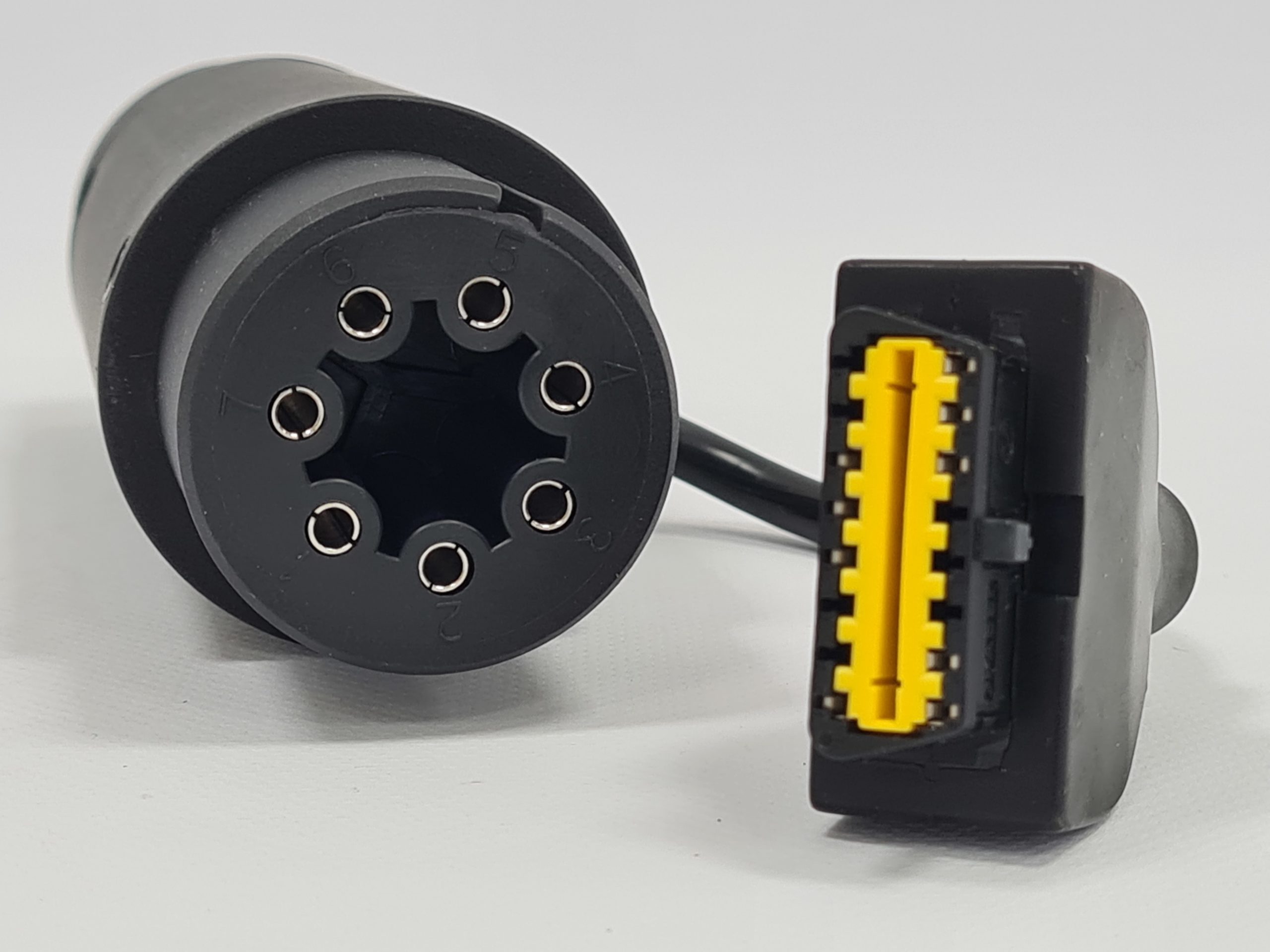 С оригинальным кабелем выполняются все тесты, регулировки и перепрограммирование модулей, предлагаемых в программе диагностики TEXA IDC6 TRUCK. Предназначается для диагностики систем полуприцепов или прицепов WABCO, KNORR, HALDEX. Кабель подключают в цепь между тягачом и полуприцепом. Попытка подключения контрафактных вариантов кабелей приводит к повреждению входных цепей сканера TEXA и отказу в гарантийном облуживании.