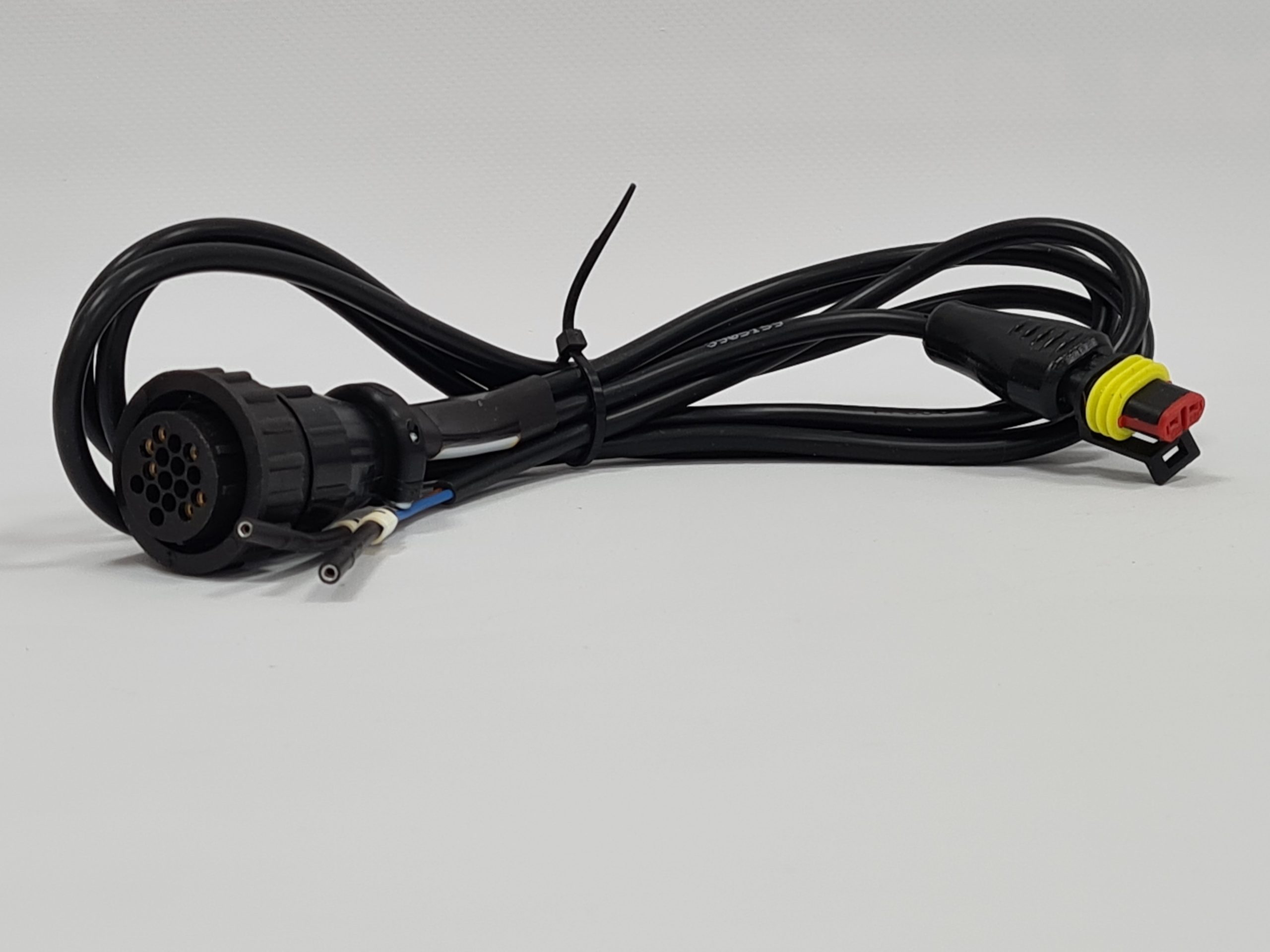 Клеммный кабель для диагностики двигателей VOLVO PENTA, оборудованных блоком управления EGC и круглой розеткой с 8 разъемами. Эта розетка может быть установлена на бензиновых двигателя, оборудованных блоком управления Volvo Penta EGC System и выпускавшихся между маем 2005 и маем 2007 гг. У кабеля есть 2 конечные насадки. Для подключения к розетке ознакомьтесь с информацией диагностической программы при соответствующем выборе. ПРИМЕЧАНИЕ: Вам необходимо подключить кабель к аккумулятору двигателя/автомобиля с помощью зажимов для включения прибора и выполнения диагностики.